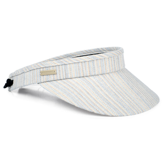 Seeberger Hats Cotton-Linen Sun Visor - Light Blue-Off White
