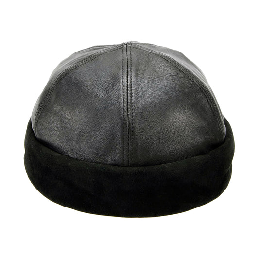 Seeberger Hats Leather Docker Beanie Hat - Black