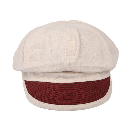 Seeberger Hats Cotton-Linen Baker Boy Cap - Sand-Burgundy