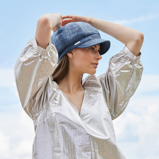 Seeberger Hats Denim Baker Boy Cap - Blue
