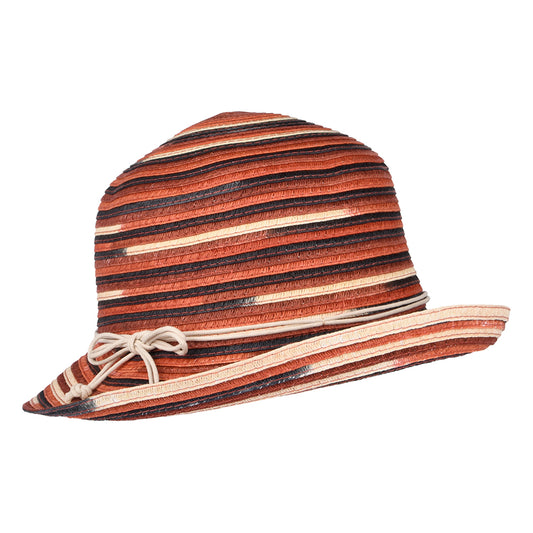 Seeberger Hats Toyo Straw Cloche Hat With Turned-Up Brim - Terracotta-Cream