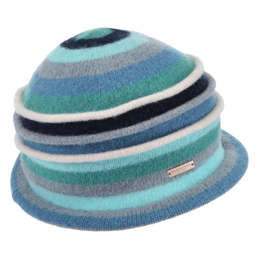 Seeberger Hats Striped Boiled Virgin Wool Cloche Hat - Jade-Blue