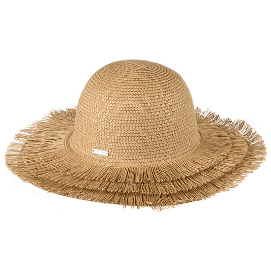 Seeberger Hats Toyo Straw Fringe Sun Hat - Light Brown