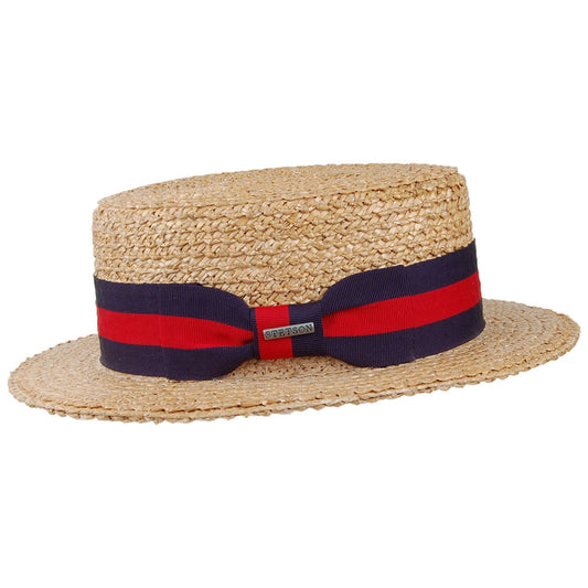 Stetson Hats Harlem Boater Hat with Blue and Red Band - Natural
