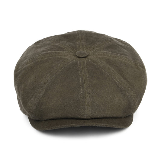 Stetson Hats Hatteras Vintage Waxed Cotton Newsboy Cap With Earflaps - Olive