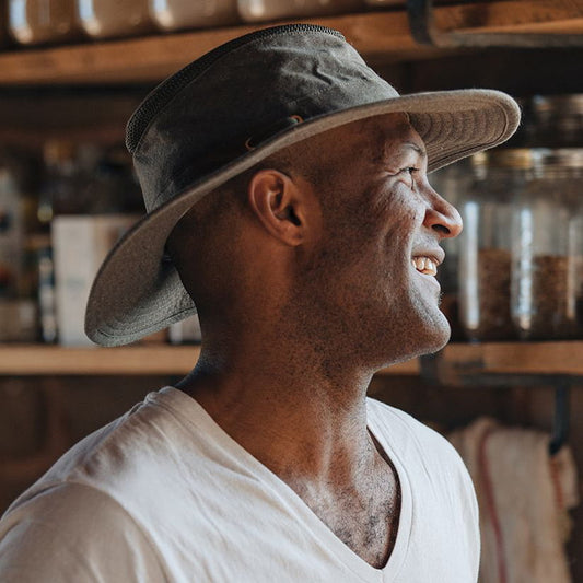Tilley Hats TWC7 Waxed Cotton Outback Hat - Tan-Navy