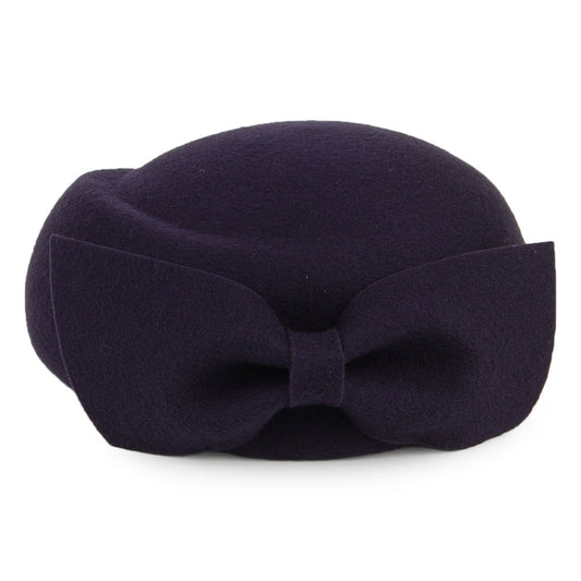 Whiteley Hats Avery Wool Pillbox Hat with Bow - Navy Blue