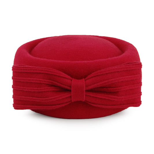 Whiteley Hats Jackie O Loop Bow Wool Pillbox Hat - Red