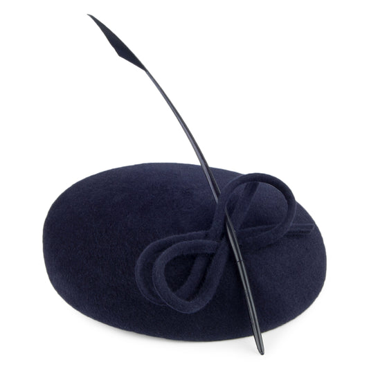 Whiteley Hats Fur Felt Beret with Quill - Navy Blue
