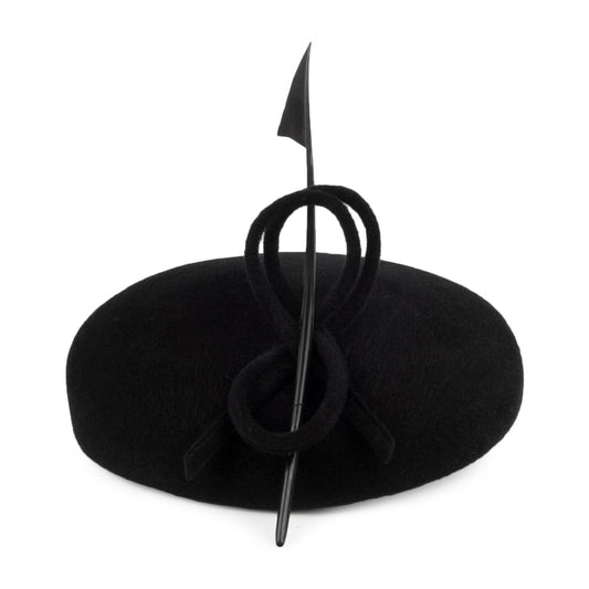 Whiteley Hats Fur Felt Beret with Quill - Black