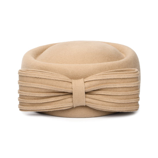 Whiteley Hats Jackie O Loop Bow Wool Pillbox Hat - Camel