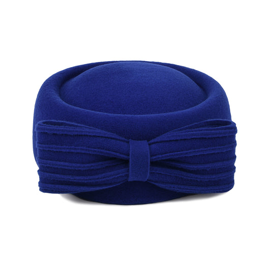 Whiteley Hats Jackie O Loop Bow Wool Pillbox Hat - Royal Blue