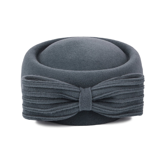 Whiteley Hats Jackie O Loop Bow Wool Pillbox Hat - Charcoal
