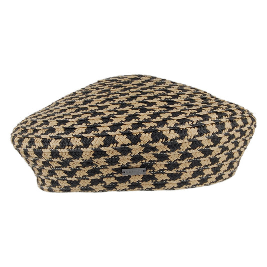 Betmar Hats Christine Houndstooth Summer Beret - Black-Natural