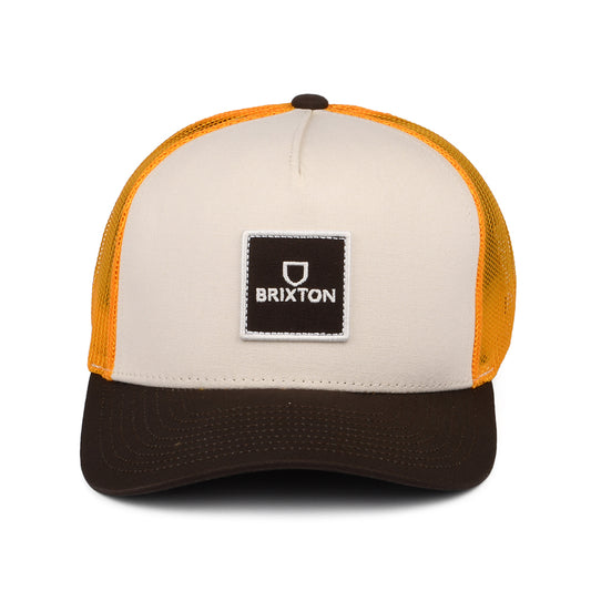 Brixton Hats Alpha Block NetPlus C MP Trucker Cap - Off White-Orange-Brown