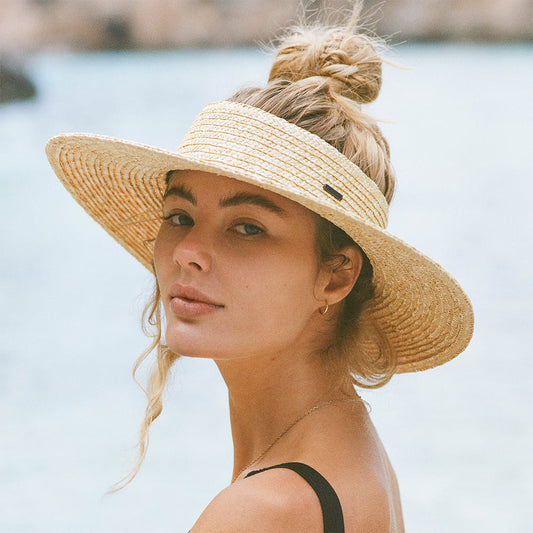 Brixton Hats Joanna Straw Full Brim Sun Visor - Natural