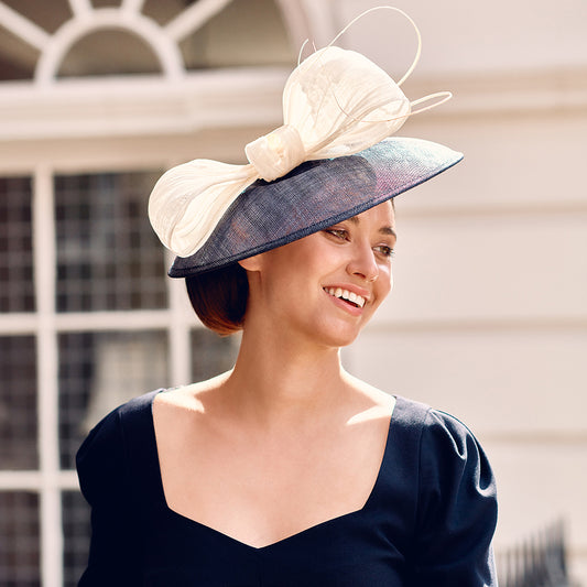 Failsworth Hats Claire Wedding Hatinator With Big Bow - Navy-Ivory