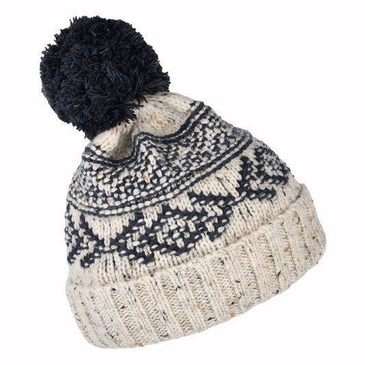 Failsworth Hats Fair Isle Bobble Hat - Oatmeal-Navy
