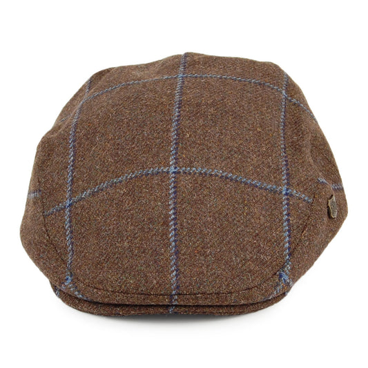 Failsworth Hats Gamekeeper Windowpane Water Repellent Flat Cap - Brown-Rust-Blue