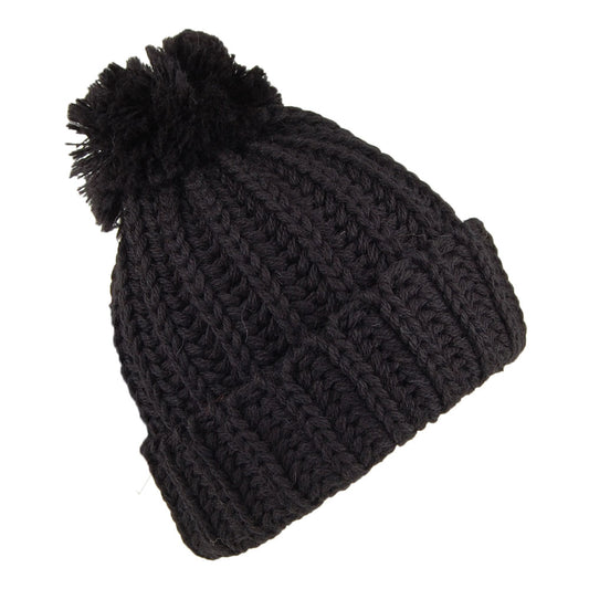 Highland 2000 Cuffed Chunky English Wool Bobble Hat - Black