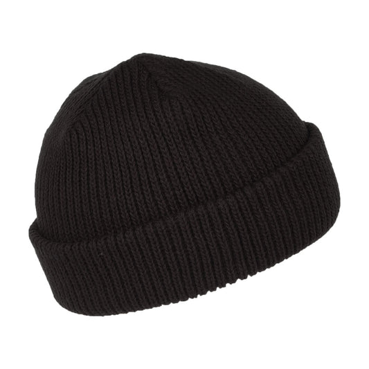 Highland 2000 Merino Wool Short Fisherman Beanie Hat - Black