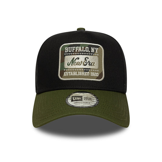 New Era 9FORTY A-Frame Snapback Cap - NE Camo Patch - Black-Moss
