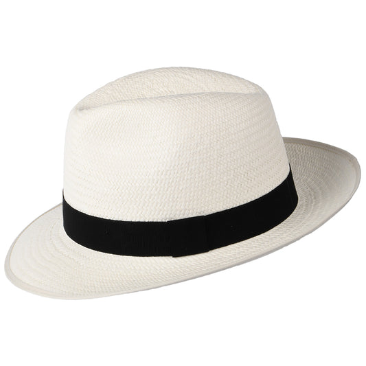 Christys Hats Bexley Panama Fedora Hat with Black Band - Semi-Bleached