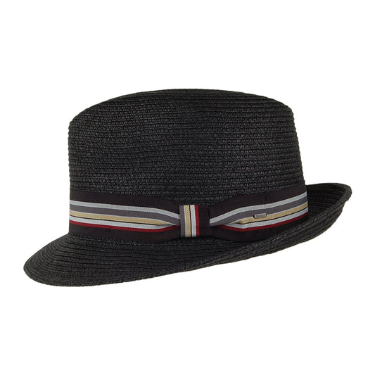 Brixton Hats Carolina Herringbone Packable Toyo Straw Fedora Hat - Black-Natural