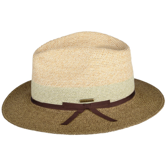 Seeberger Hats Striped Straw Fedora Hat - Natural-Sand