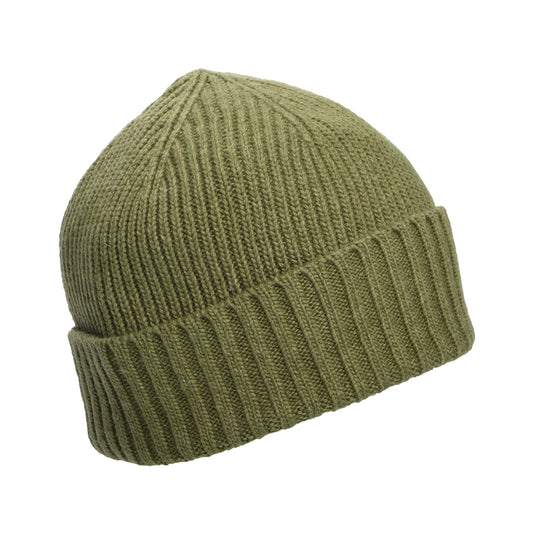 Highland 2000 Short Fishermans English Wool Beanie Hat - Olive