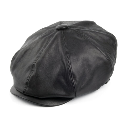 Stetson Hats Hatteras Leather Newsboy Cap - Black