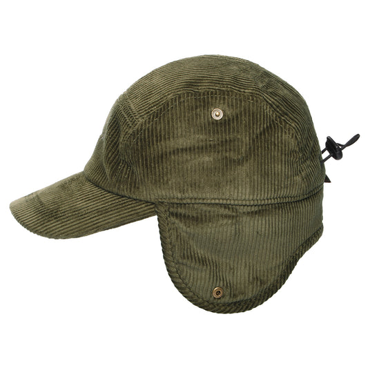 Barbour Hats Lowfen Corduroy 5 Panel Cap with Earflaps - Olive