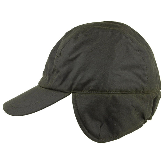 Failsworth Lumberjack British Waxed Cotton Baseball Cap with Earflaps - Olive