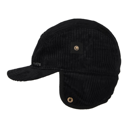 Barts Hats Rayner Corduroy 5 Panel Cap with Earflaps - Black