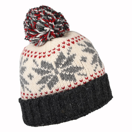 Kusan Snowflake Turn Up Bobble Hat - White-Grey