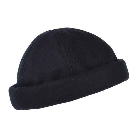 Dorfman Pacific Hats Melton Wool Docker Beanie Hat - Navy Blue