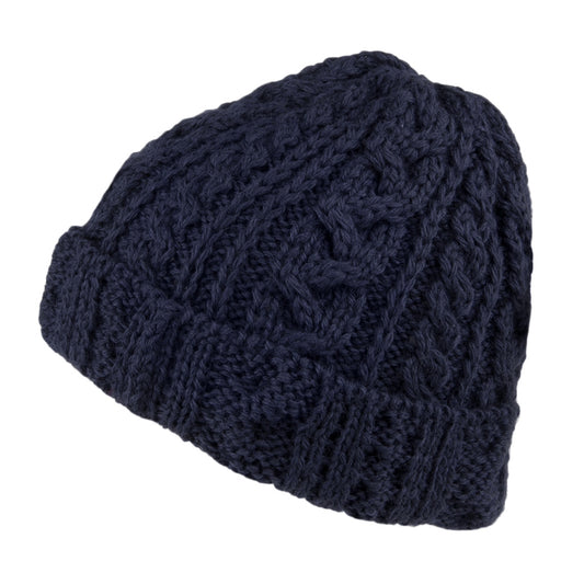 Highland 2000 Merino Wool Short Fisherman Beanie Hat - Navy Blue