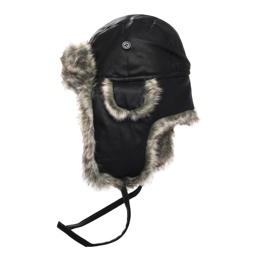 Jaxon & James Washed Faux Leather Trapper Hat - Black
