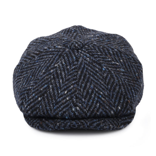 Jaxon & James Heavyweight Donegal Tweed Herringbone Pettigo Newsboy Cap - Navy-Black