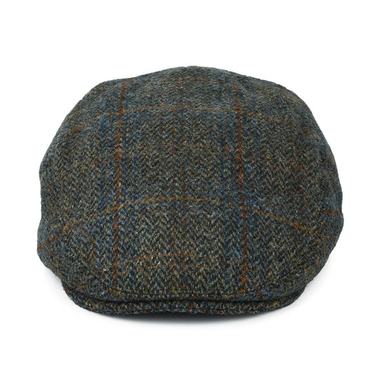 Failsworth Hats HARRIS TWEED Windowpane Herringbone Stornoway Flat Cap - Olive-Blue-Rust