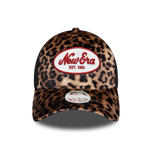 New Era Womens 9FORTY M-Crown A-Frame Trucker Cap - NE Leopard - Light Brown-Black