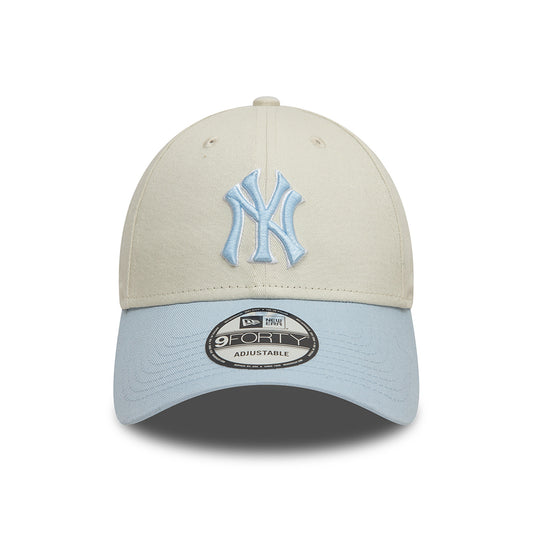 New Era 9FORTY New York Yankees Baseball Cap - MLB World Series Patch - Ivory-Light Blue