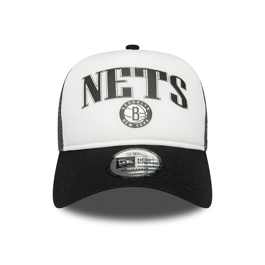 New Era Brooklyn Nets A-Frame Trucker Cap - NBA Retro - White-Black