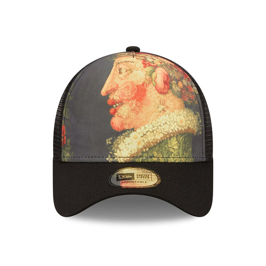 New Era 9FORTY Four Seasons A-Frame Trucker Cap - Le Louvre AOP - Black