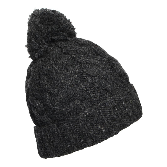 Kusan Cable Knit Turn Up Bobble Hat - Charcoal