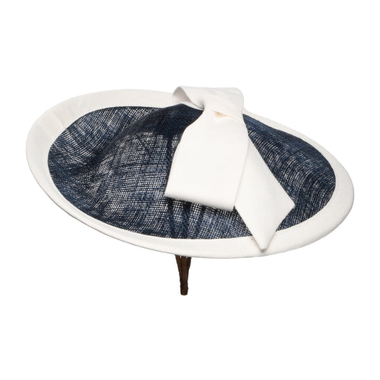 Whiteley Hats Grace Straw Disc Fascinator - Navy-Ivory