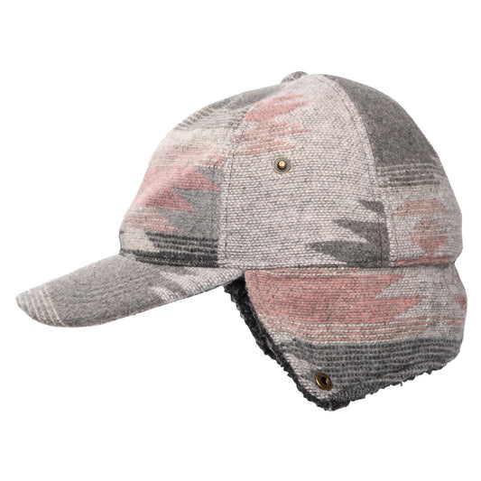 Scala Hats Sapos Aztec Print Baseball Cap with Earflaps - Grey-Multi