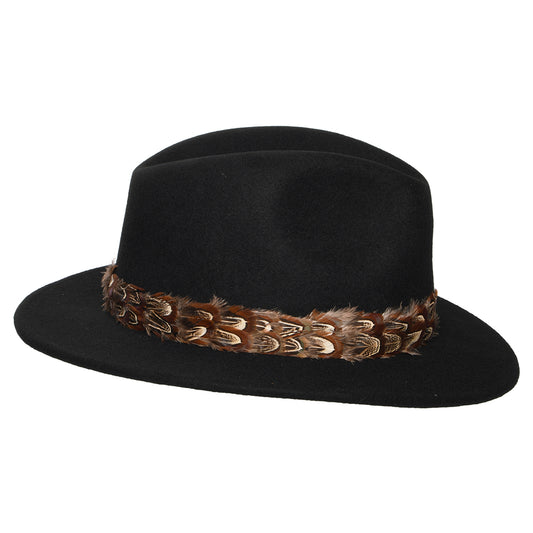 Denton Hats Kansas Crushable Water Repellent Wool Felt Fedora Hat With Feather Band - Black
