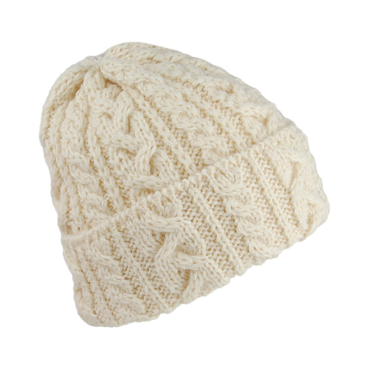 Highland 2000 Cuffed Cable Knit English Wool Beanie Hat - Natural