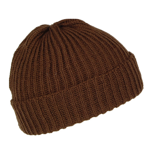 Highland 2000 Merino Wool Short Fisherman Beanie Hat - Chocolate